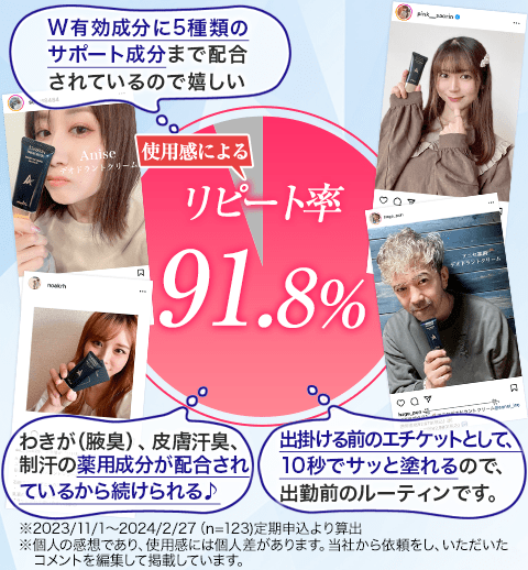 ※1 全国のエステティシャン103名 続けやすい(値段・量)サイト比較イメージ調査(日本トレンドマップ研究所調べ) ※2 当社調べ(購入者123名様) ※3 クローズド・パッチテスト(丸石ラボ株式会社調べ) ※4 アニセシリーズの販売累計 集計期間2023年12月12日まで