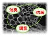 この炭の無数の孔が、空気中の湿気や雑菌のエサとなる汚れを効果的に吸着してくれます。さらに、炭のPH値は、弱アルカリ性〜アルカリ性ですので、雑菌が繁殖しにくい環境を作る事が可能なのです。