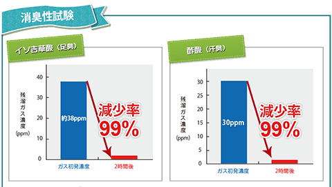 使用後120分で、靴の残留ガス濃度が87%減!!