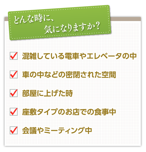 • 消臭スプレーを使っている所を、誰かに見られていないか、ヒヤヒヤしている