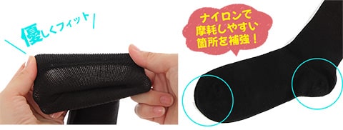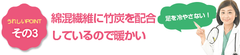 また、竹炭を配合することで、靴下内の汗を吸収して外側へ放湿する機能を高めています。