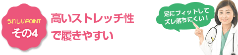 伸縮性の高い特殊ポリウレタンを使用しているため、高いストレッチ性を持ち、足にぴったり吸い付くような着心地のよさを実現しました。
